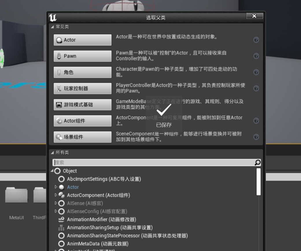 除了选择actor,pawn,角色,控制器,游戏模式,组件外,还可以选择基于c++类创建