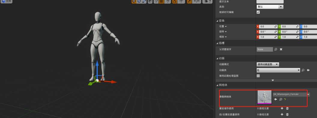 添加一个静态网格组件,选择骨骼体