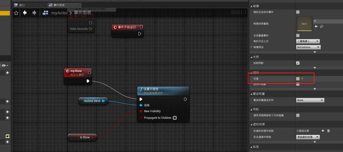 这个蓝图类算是写完了,先是不可视,通过自定义myshow设置可视性