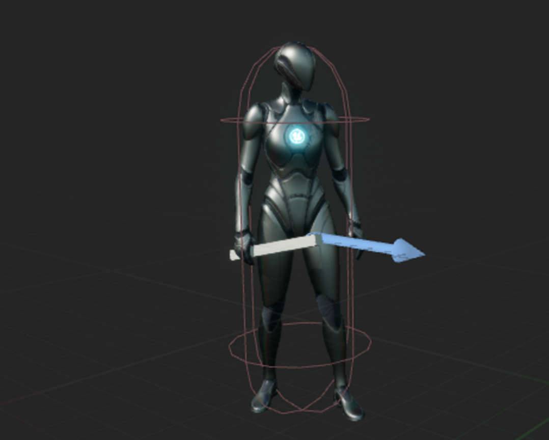 1.以小白人为例,在小白人右手添加一个长条,找到对应的骨骼下添加插槽